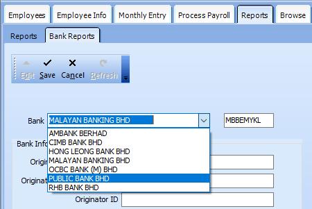 Edit and choose the bank that you wish to upload data to. Then next time you start the program, the reports available for the bank will be displayed.