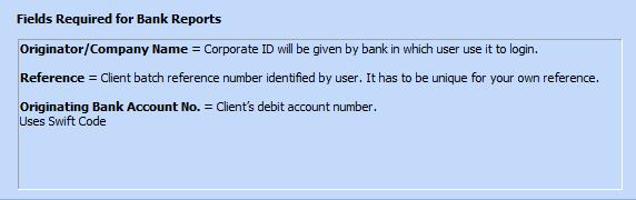 This screen is used for generating text and Excel files for direct upload to banks. This feature will be updated from time to time with more and more banks.