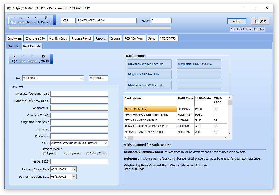 Different Banks will have a different number of reports available. If the bank you use is not available please contact Actpay and will design the report for you.